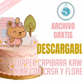 Topper Capibara Kawaii Niña con Casa y Flores – Archivo Gratis para Silhouette Cameo
