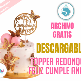 Topper Redondo Feliz Cumpleaños GRATIS para Silhouette Cameo | Archivo Digital con Mariposas