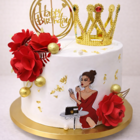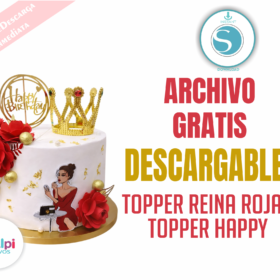 Topper Reina Glam Roja – Topper Happy Birthday Corona Dorada
