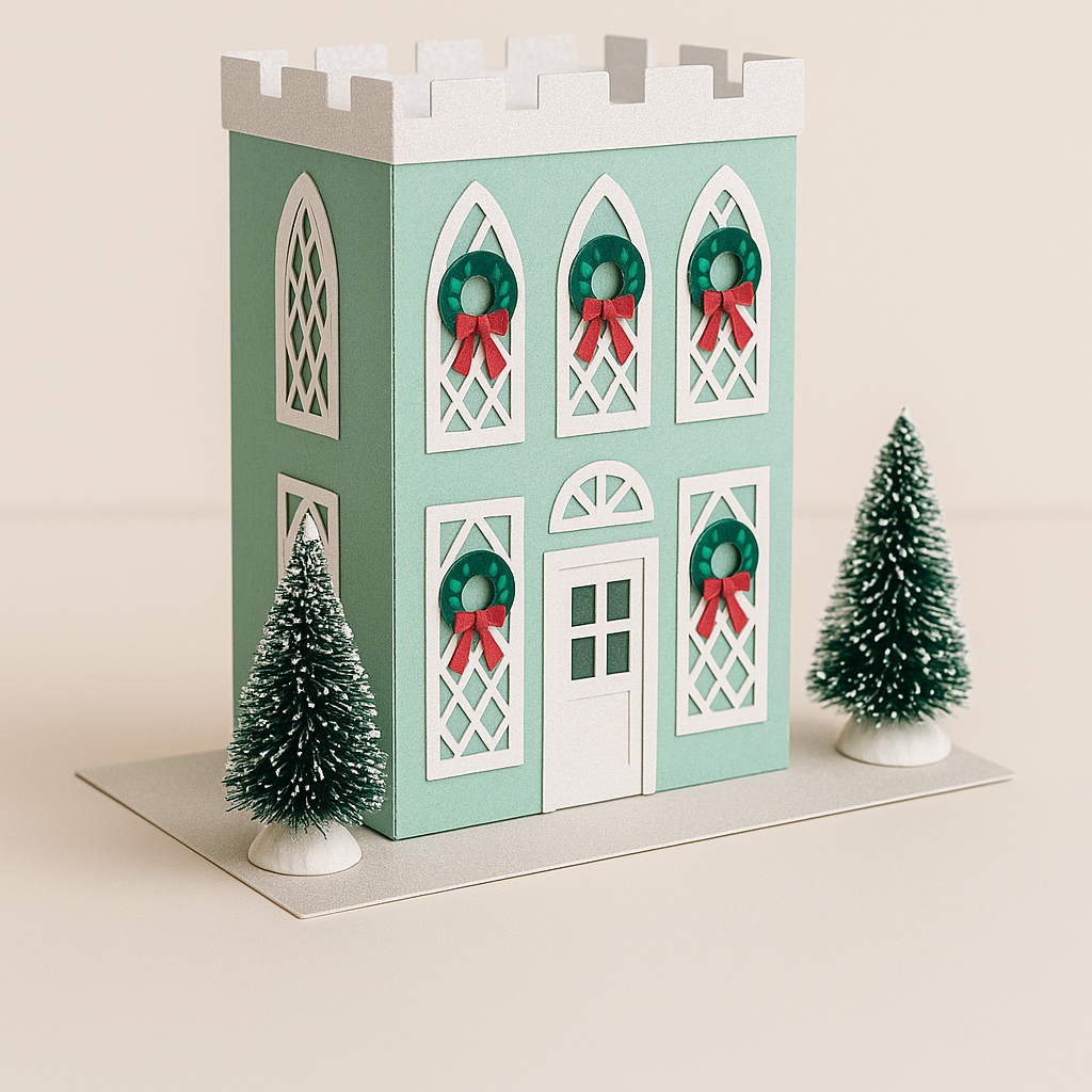 Disfruta esta hermosa Villa Mathi – Casa Navideña en capas estilo 3D, creada especialmente para cortar en Silhouette Cameo y armar en cartulina con el estilo pastel característico de Gualpi Creativos.