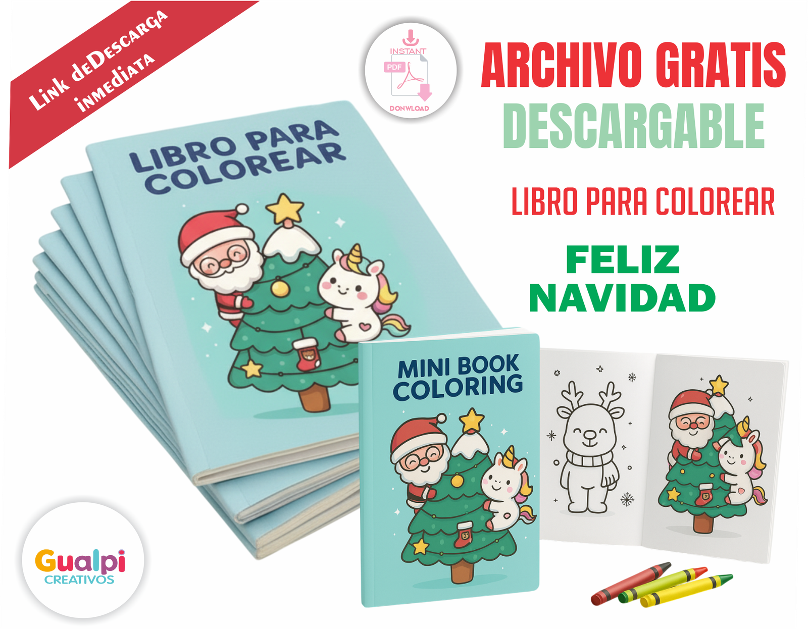 Incluye versiones mini book y tamaño cuadernillo, ideal para detalles navideños, regalos para niños, eventos, fiestas infantiles, desayunos sorpresa y kits creativos.
