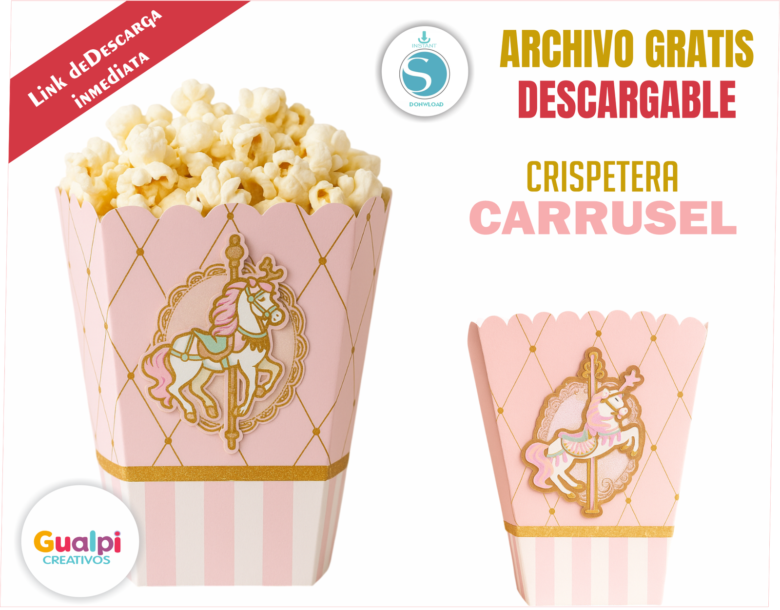 Crea esta Crispetera Carrusel con tu máquina Silhouette Cameo, ideal para decorar mesas dulces, fiestas temáticas o empaques personalizados llenos de magia. ✨