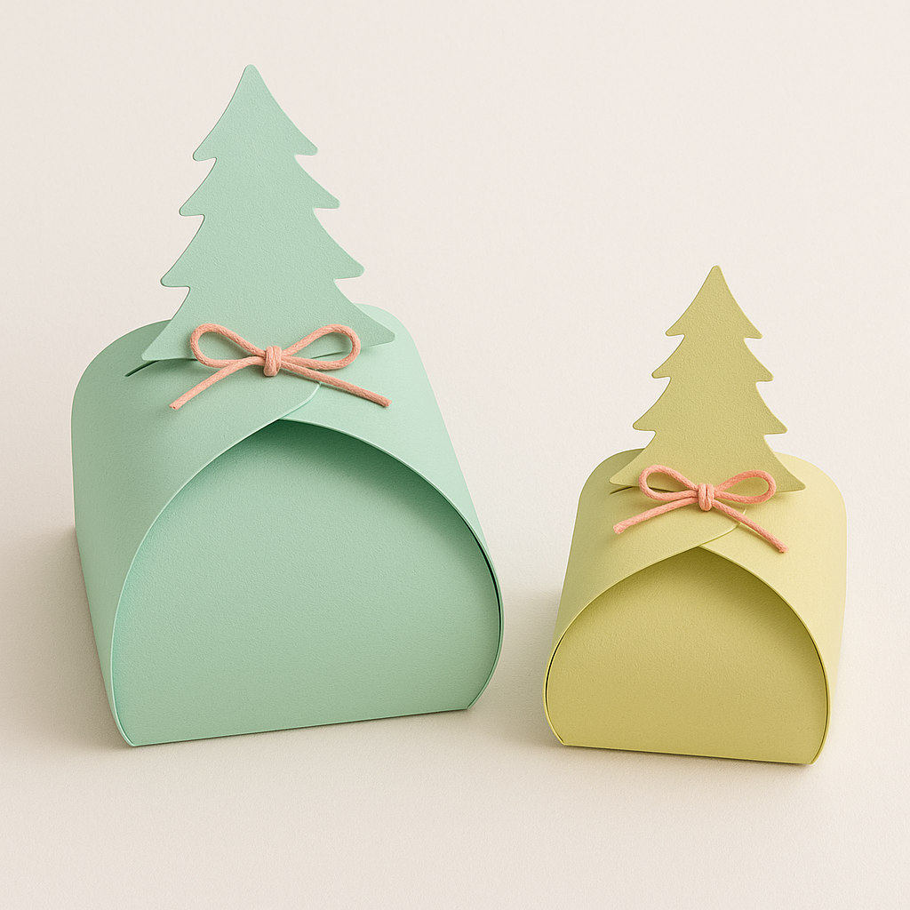 Esta hermosa caja tipo pino navideño, diseñada en cartulina con forma curva y cierre superior, es perfecta para entregar dulces, regalos pequeños, detalles para novenas, desayunos sorpresa o empaques creativos de la temporada. Su diseño en tonos pastel Gualpi le da un estilo elegante, moderno y muy navideño.