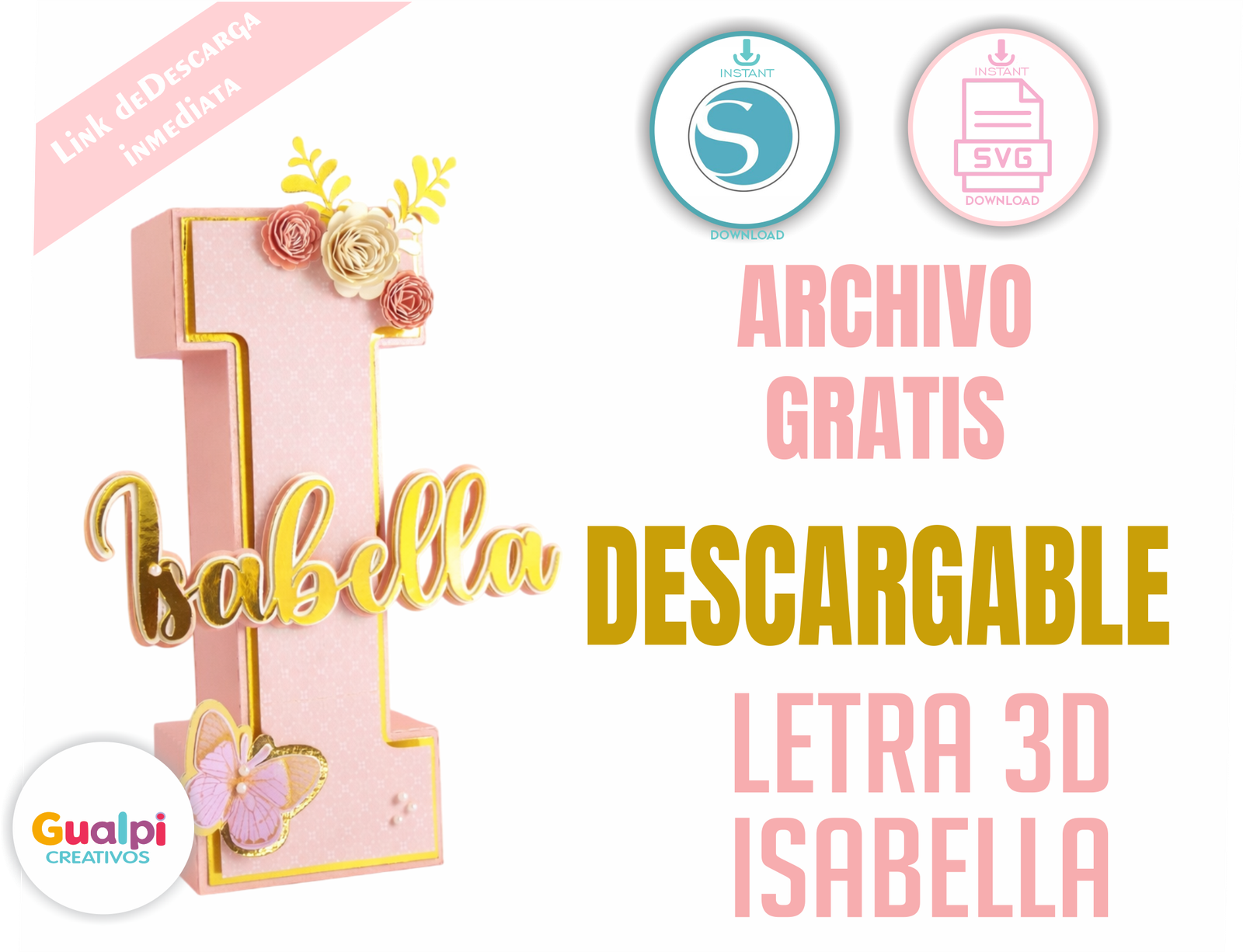 Este archivo descargable incluye una hermosa letra I 3D decorativa con nombre personalizado “Isabella”, ideal para crear decoraciones únicas y elegantes para fiestas, cumpleaños y eventos especiales.