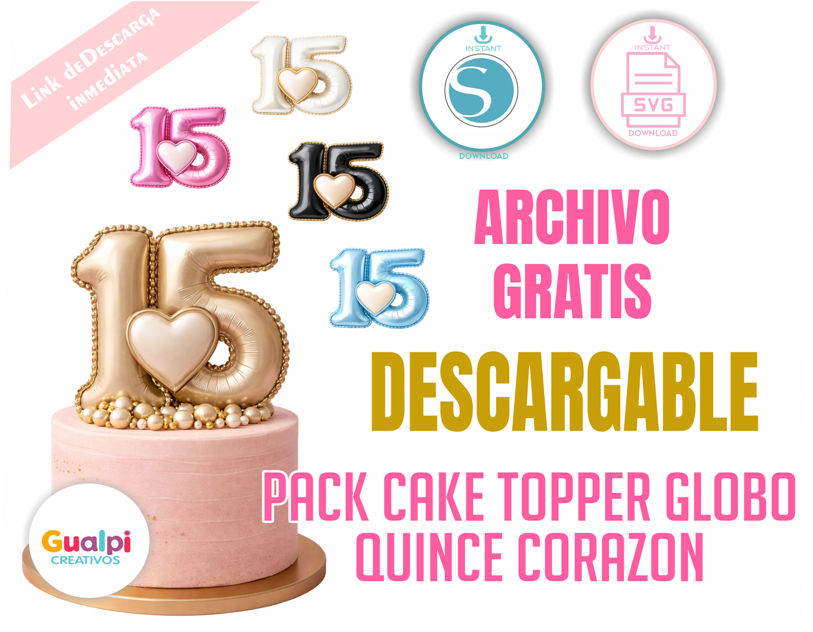 DESCARGA GRATISPack Topper Número 15 Globo Metalizado 3D Gratis | SVG Cricut Silhouette Cameo