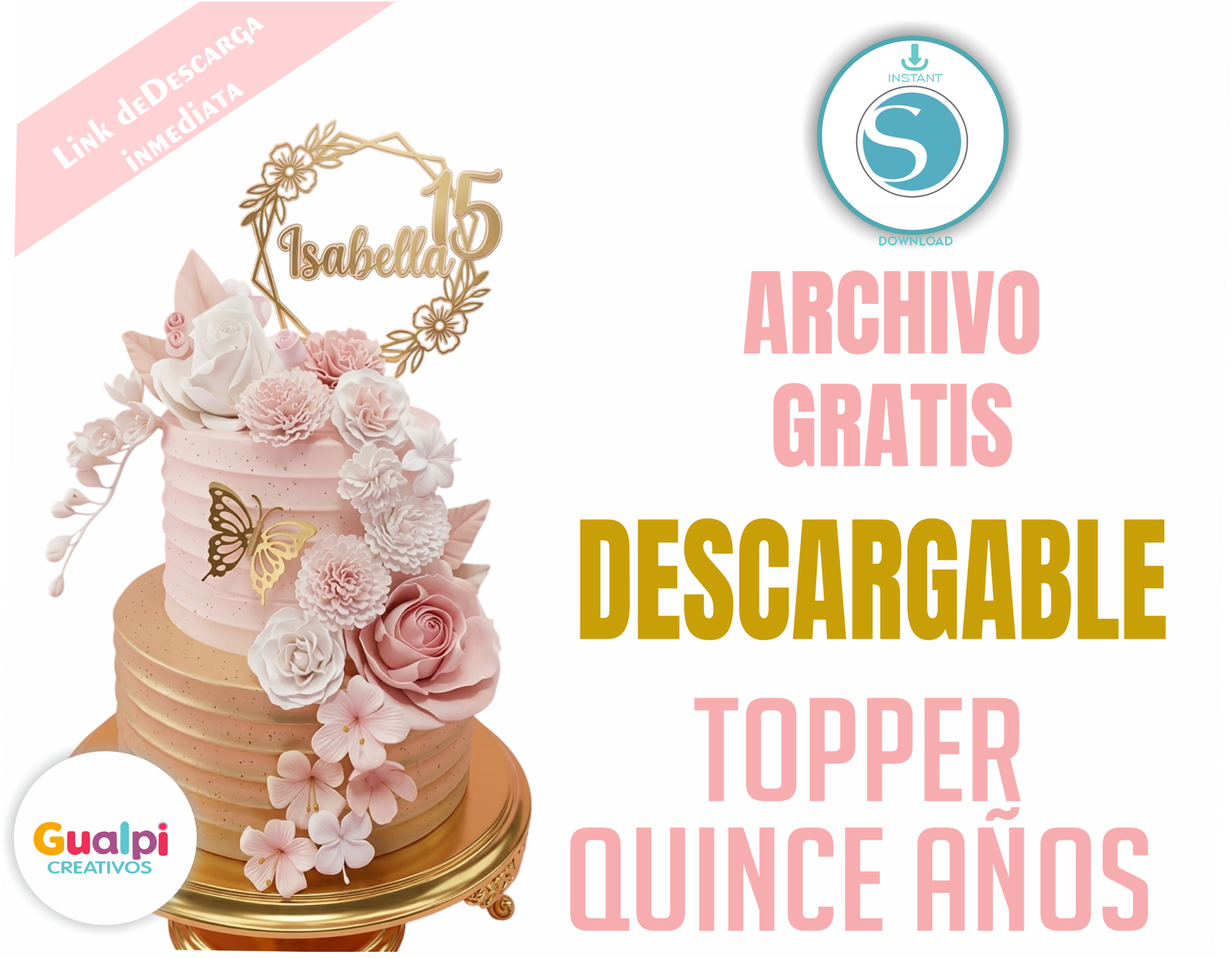 ✔ Diseño topper “15 años” con nombre personalizable