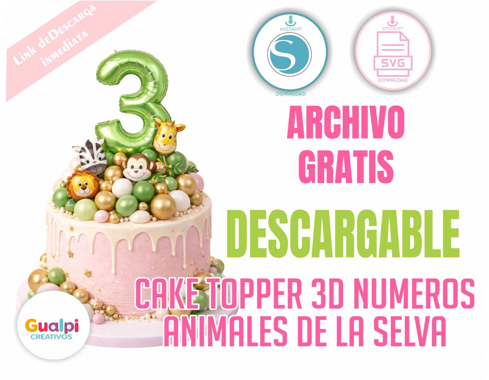 Topper Animales de la Selva Números Globo Metalizado 3D GRATIS | SVG Cameo Cricut Descarga Inmediata