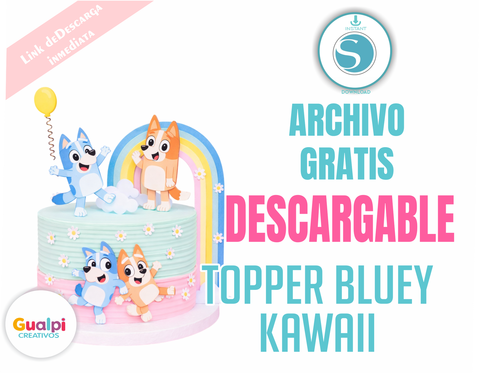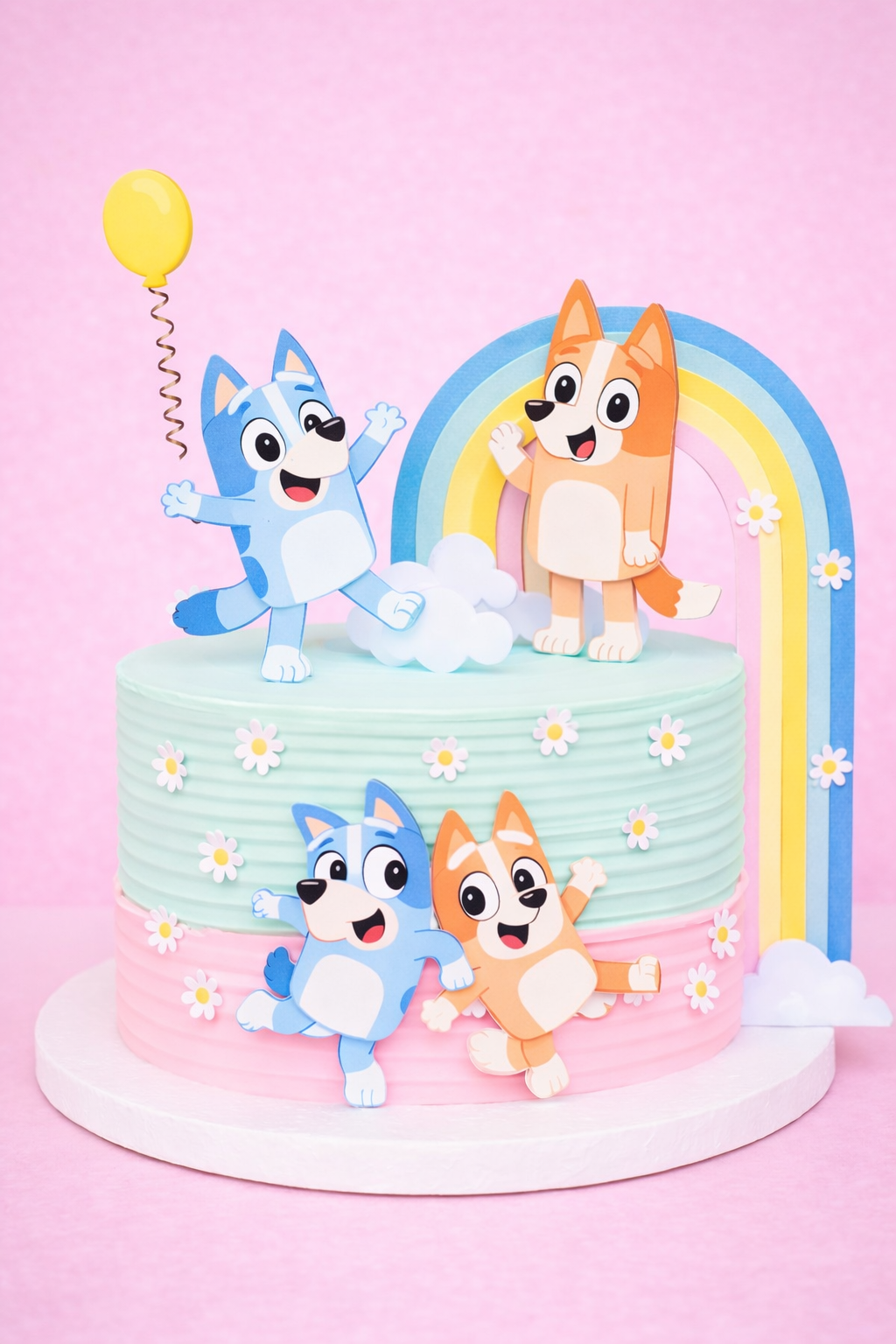 Dale un toque tierno y colorido a tus celebraciones con este hermoso Topper Bluey Kawaii, ideal para decorar tortas de cumpleaños infantiles.