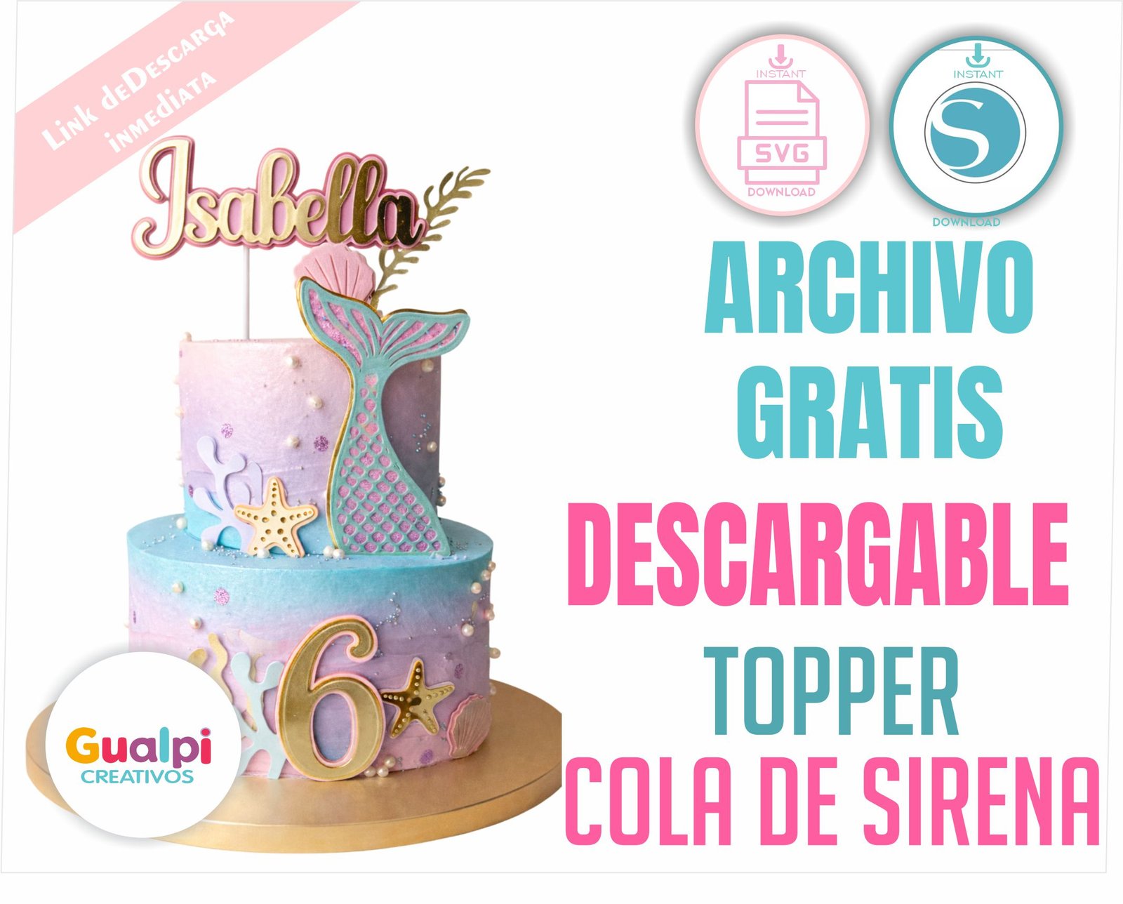 📥 Descarga GRATIS este topper de cola de sirena personalizado y crea decoraciones que enamoran a primera vista.