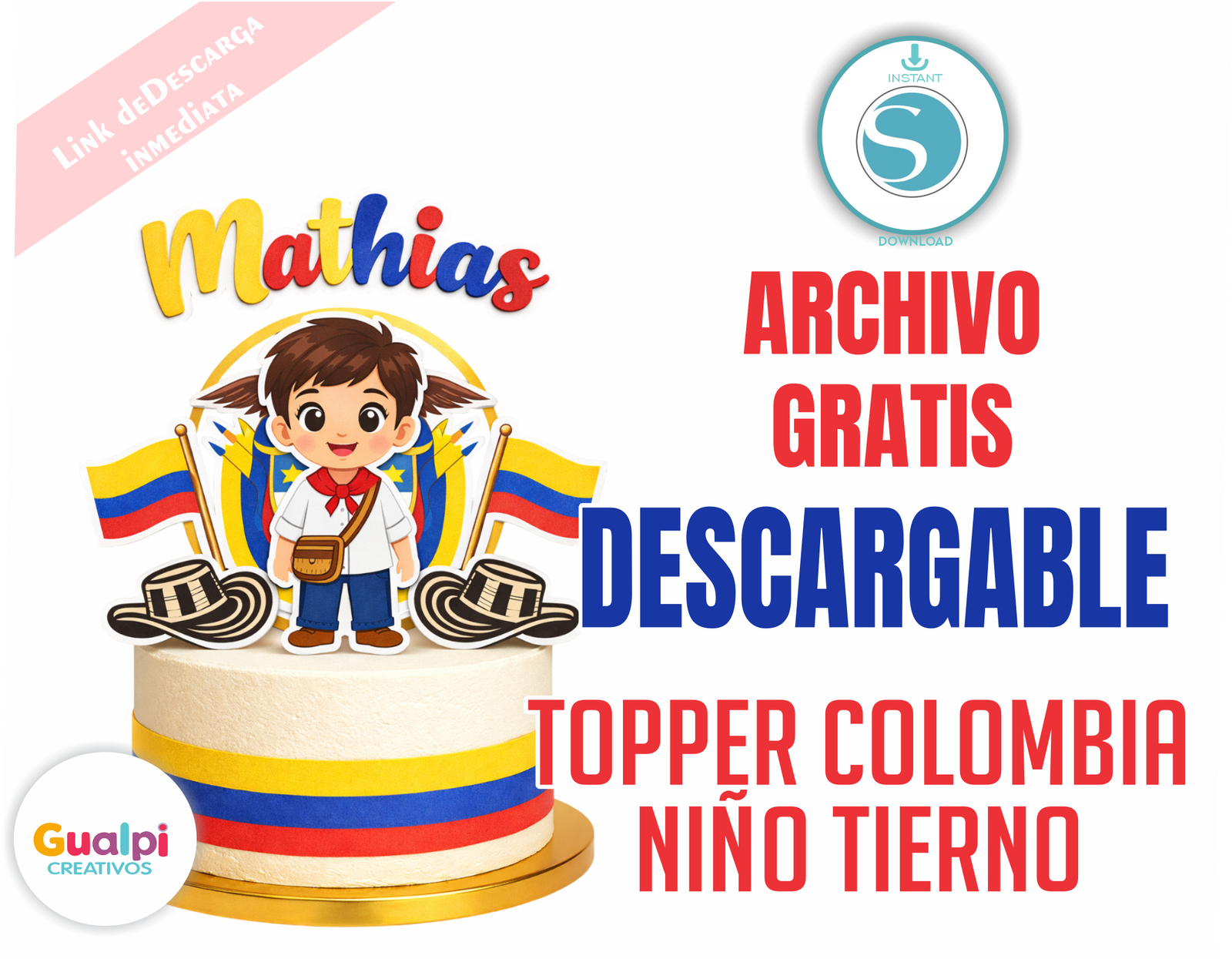 Topper Colombia Niño Personalizado | Archivo Gratis Silhouette Cameo | Decoración Cumpleaños Temática Colombiana