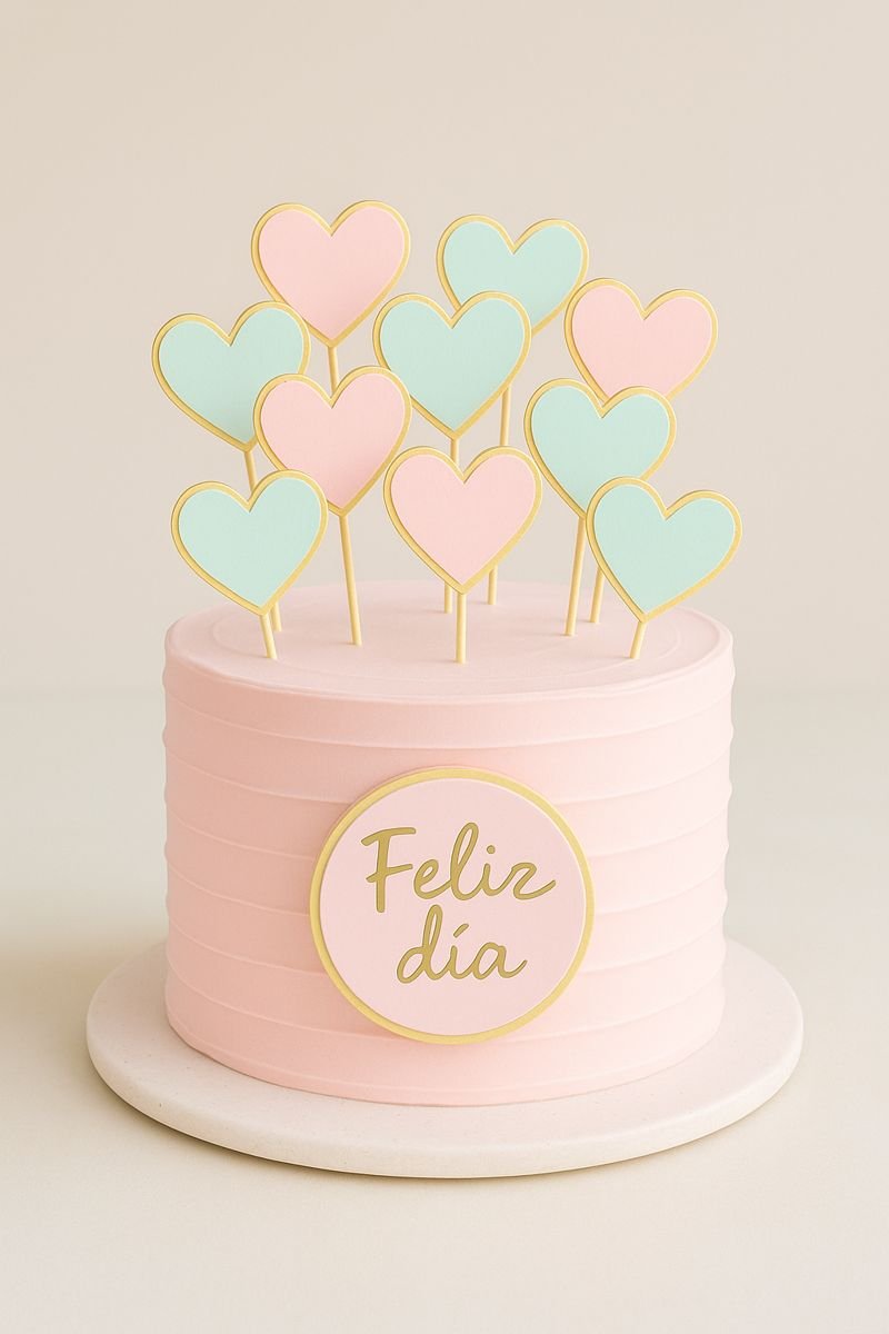 Corta los corazones en rosado pastel, menta y crema con borde dorado para un look delicado y profesional. Úsalos en grupos para lograr el efecto “ramo de corazones” que se ve súper moderno.