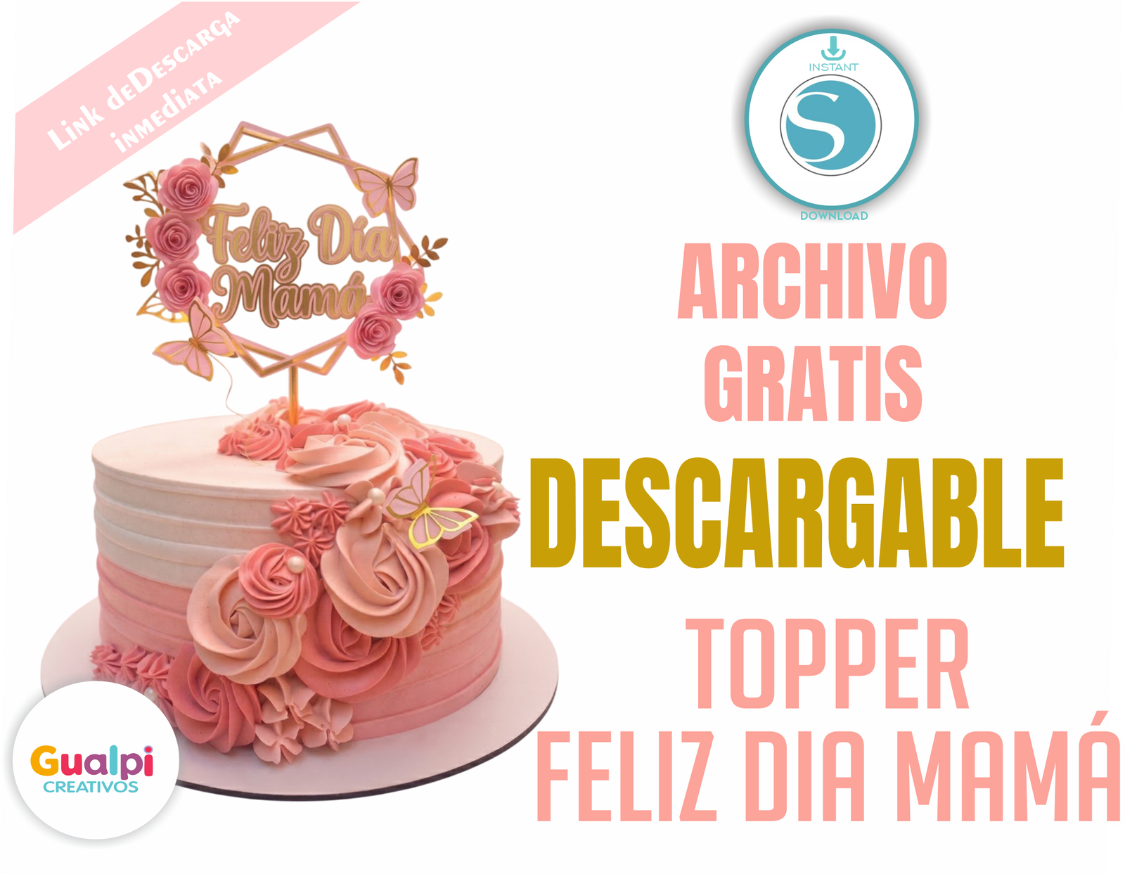 Descarga gratis este elegante topper “Feliz Día Mamá” con flores y mariposas, ideal para decorar tortas del Día de la Madre con un estilo delicado y romántico.