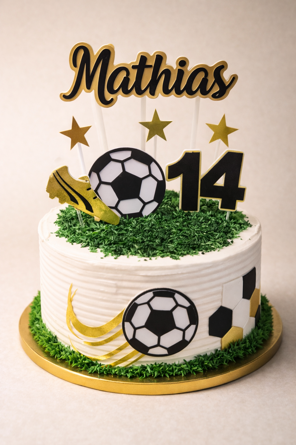 Incluye nombre, edad, balón, guayo y estrellas, pensado para armar en cartulina y lograr un acabado profesional, limpio y llamativo, perfecto para repostería creativa y emprendimientos.