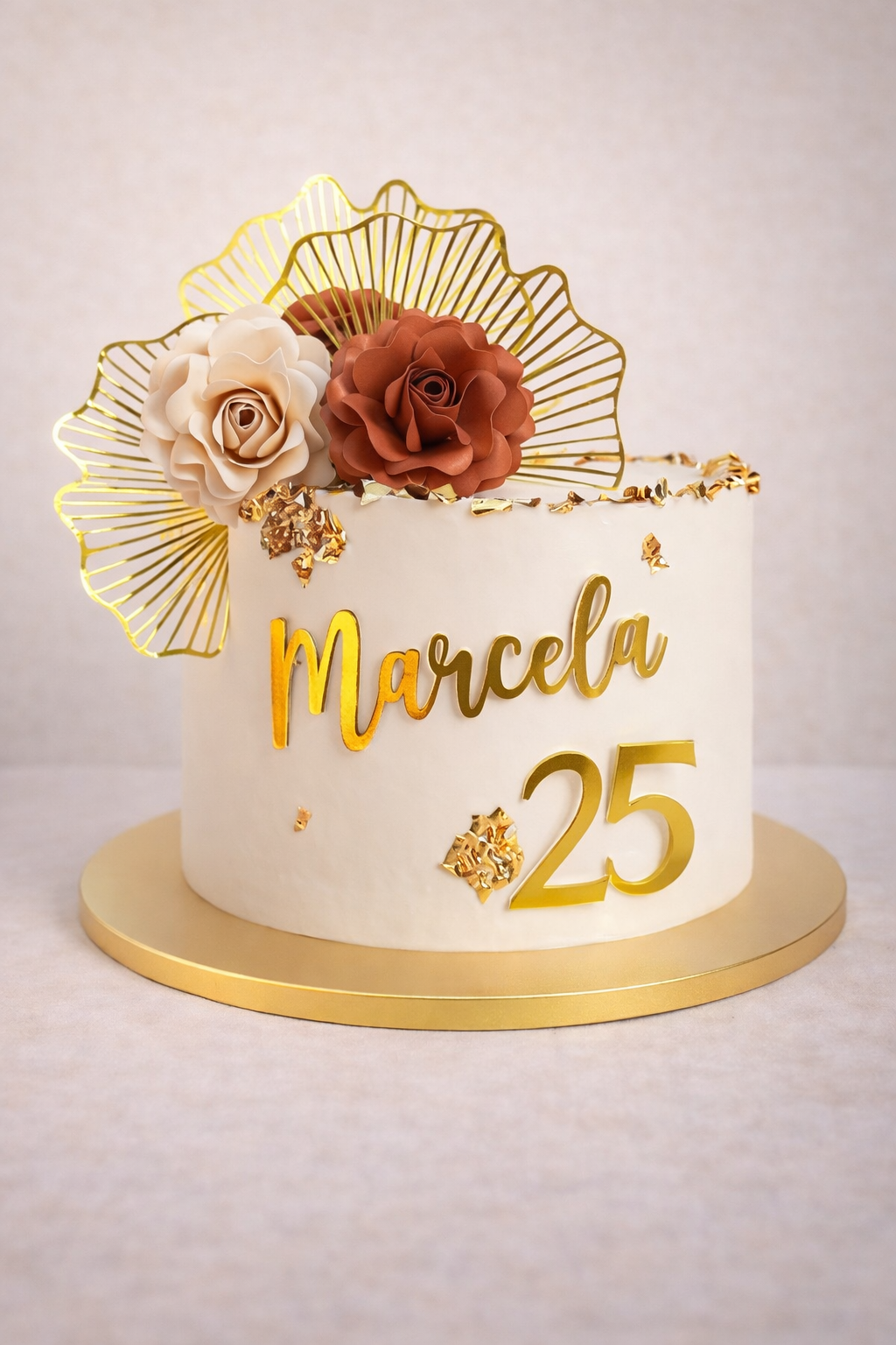Combina con flores en cartulina o detalles en foil dorado para elevar el diseño visual del pastel.