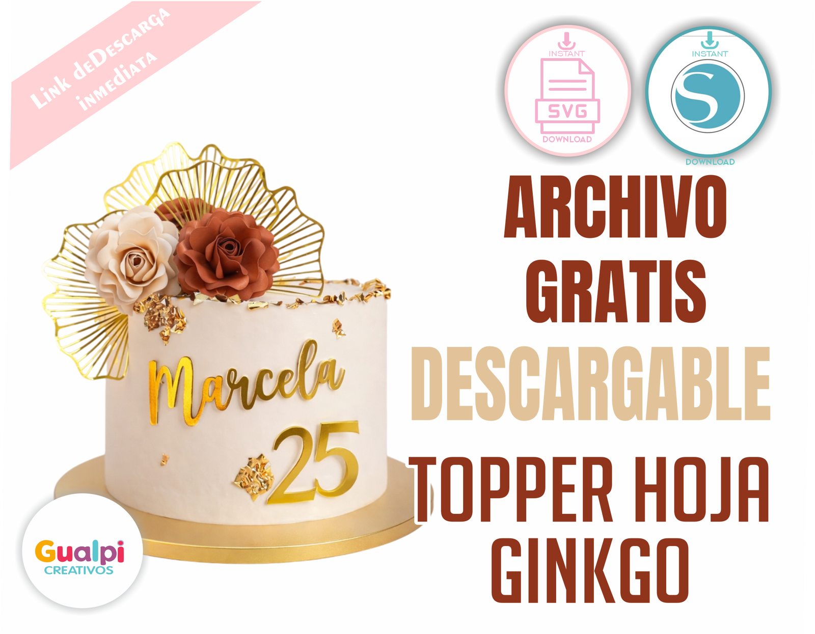 Descarga este topper elegante con hoja ginkgo, ideal para cumpleaños de adultos, celebraciones especiales y tortas sofisticadas.