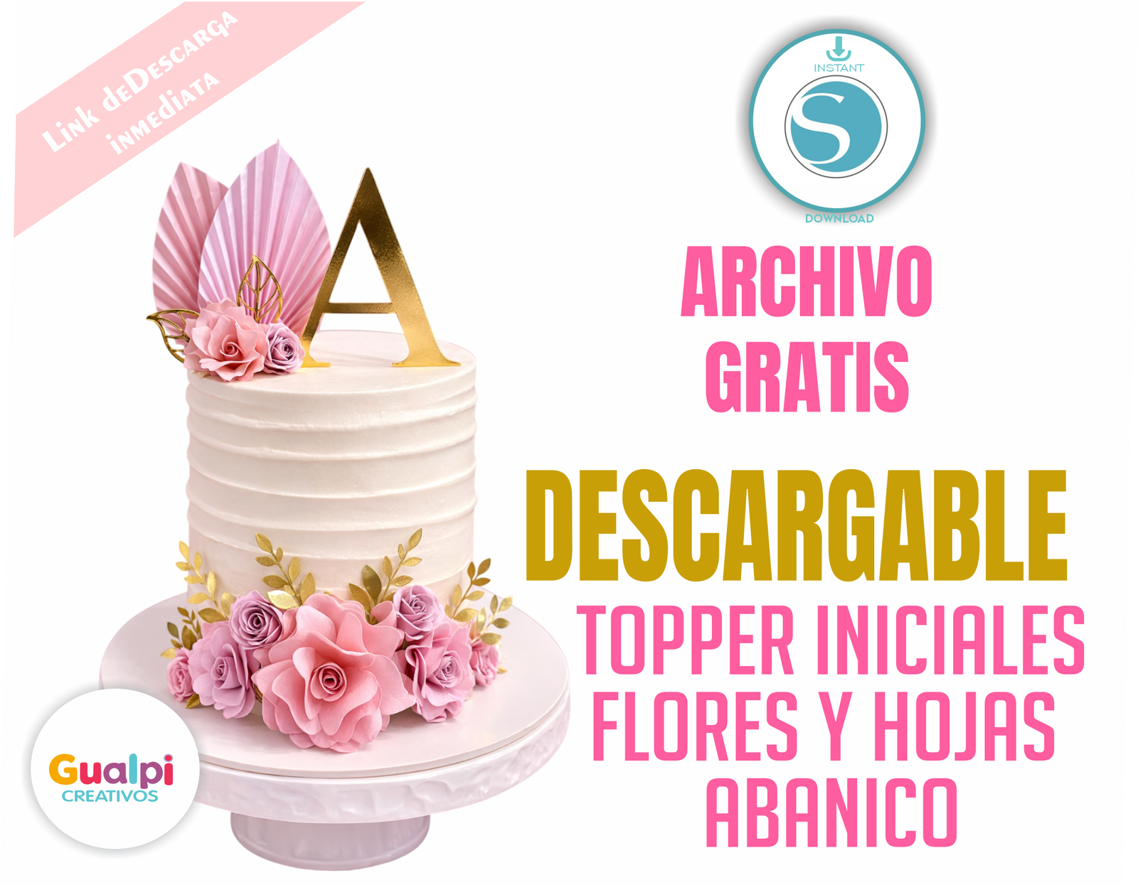 ✔ Diseño topper inicial con flores y abanico