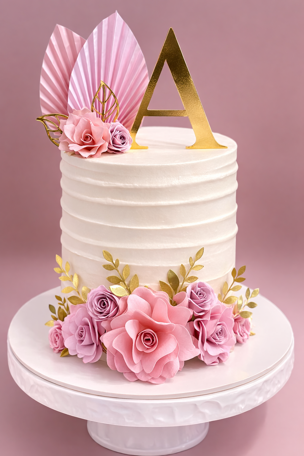 Crea decoraciones elegantes y personalizadas para tus tortas con este hermoso Topper de Iniciales con Flores, Hojas y Abanico.