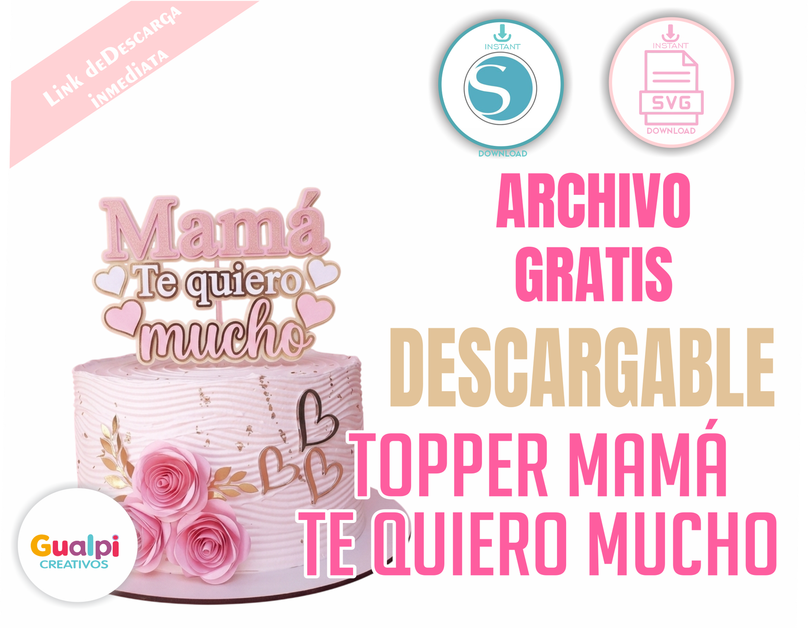 Este archivo incluye un hermoso topper “Mamá Te Quiero Mucho” en formato SVG, ideal para decorar tortas y sorprender en el Día de la Madre con un detalle lleno de amor.