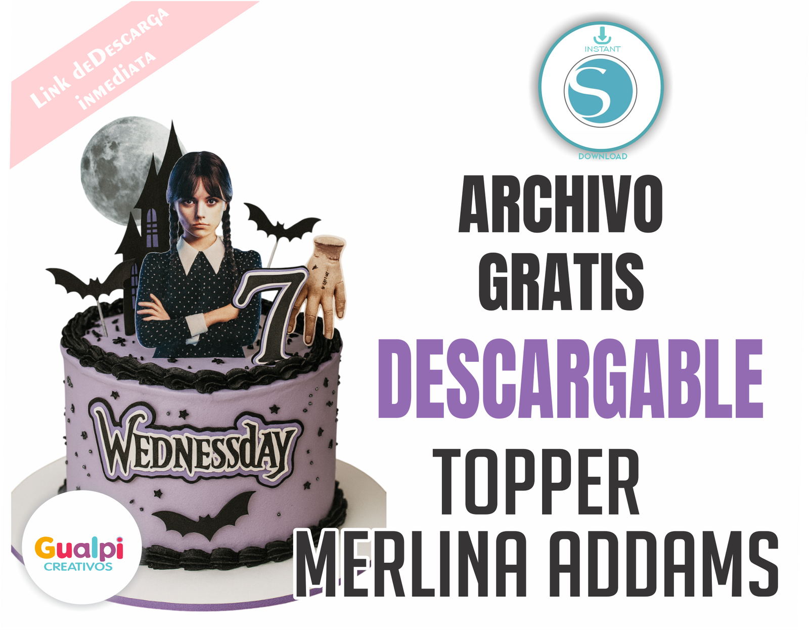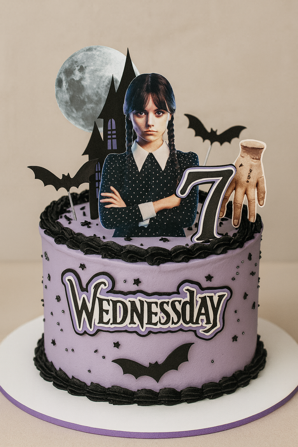 Dale un toque oscuro, elegante y súper original a tus celebraciones con este Topper de Merlina Addams 🖤✨
