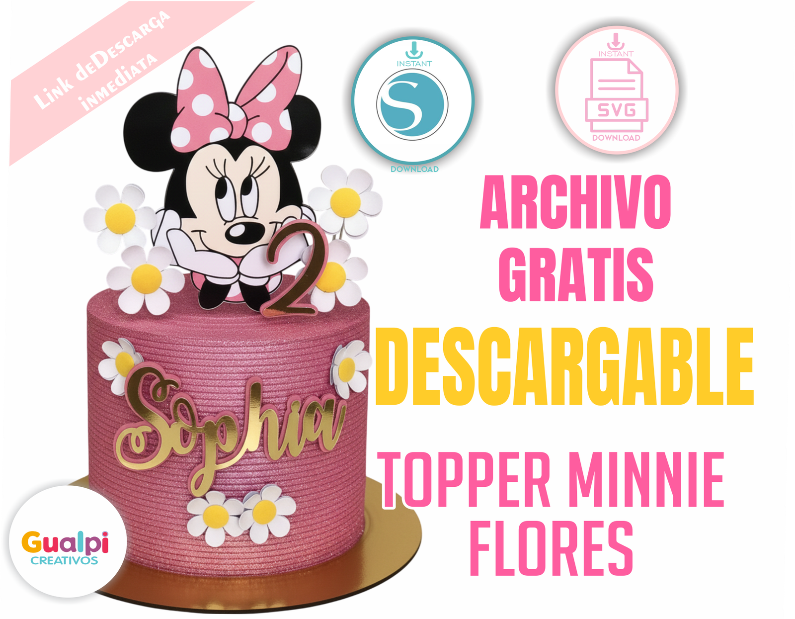Topper Minnie Flores Personalizado | Archivo Gratis SVG y Silhouette Cameo | Decoración Cumpleaños Niña