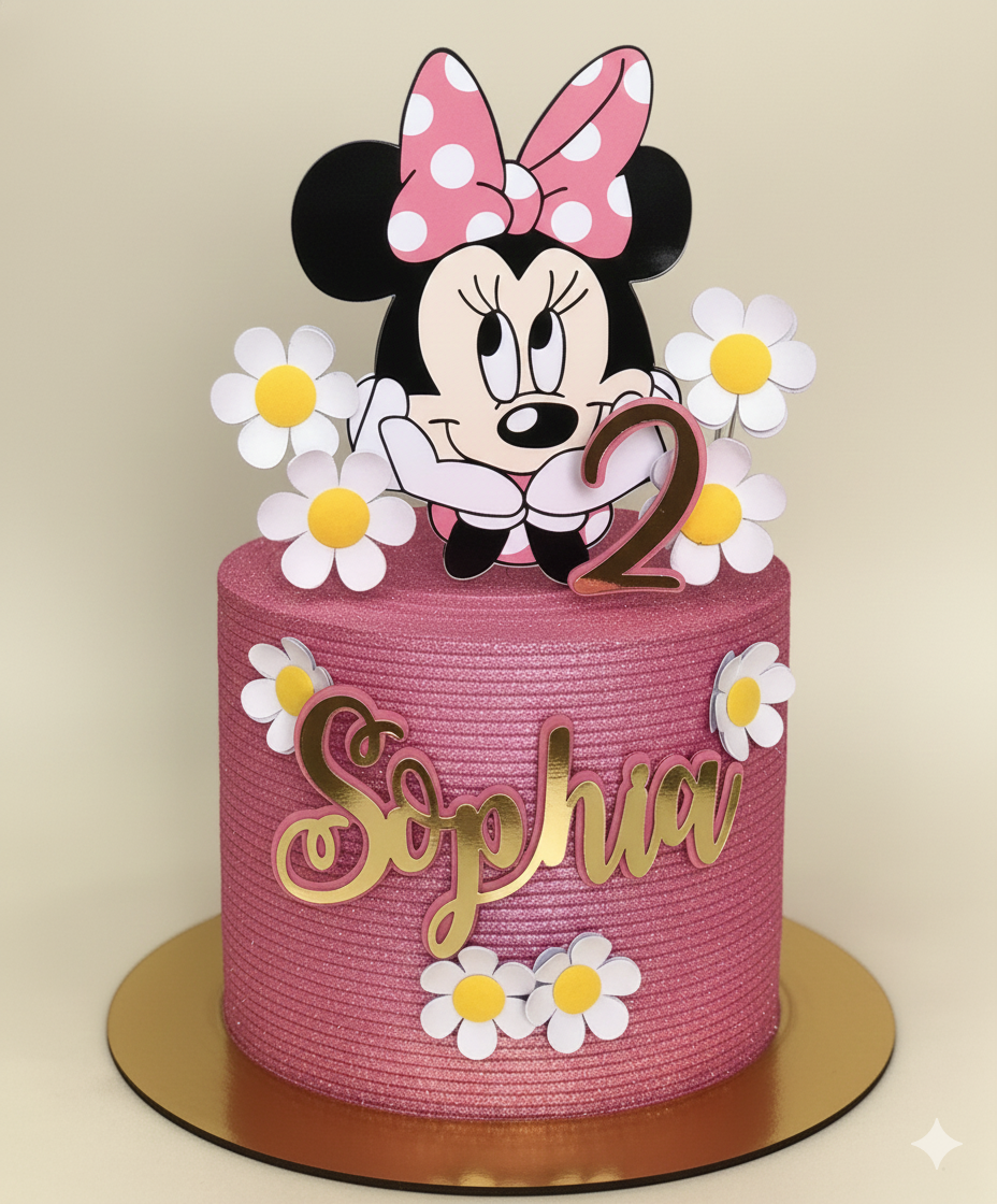 Este diseño combina la dulzura de Minnie con detalles florales, perfecto para celebraciones de niñas con temática suave y encantadora.
