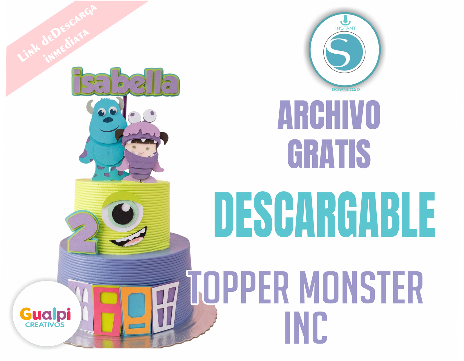 Decora tus tortas infantiles con este divertido Topper inspirado en Monsters Inc, perfecto para cumpleaños de niños y niñas.