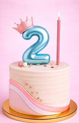 Dale un toque tierno y elegante a tus celebraciones con este Topper de Números Metalizados Azul con Corona, perfecto para cumpleaños infantiles y decoraciones con estilo delicado.