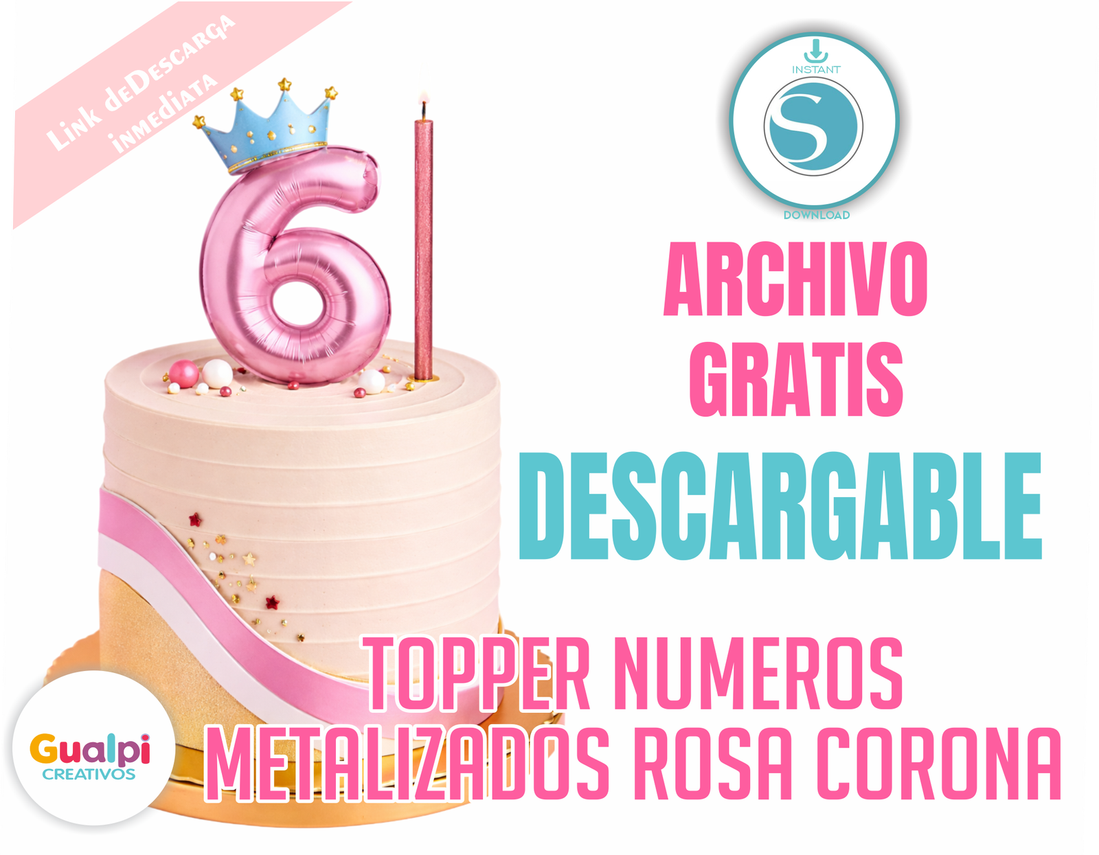 Topper Números Metalizados Rosa con Corona GRATIS para Silhouette Cameo | Decoración Torta Cumpleaños Princesa