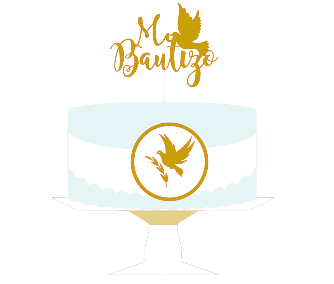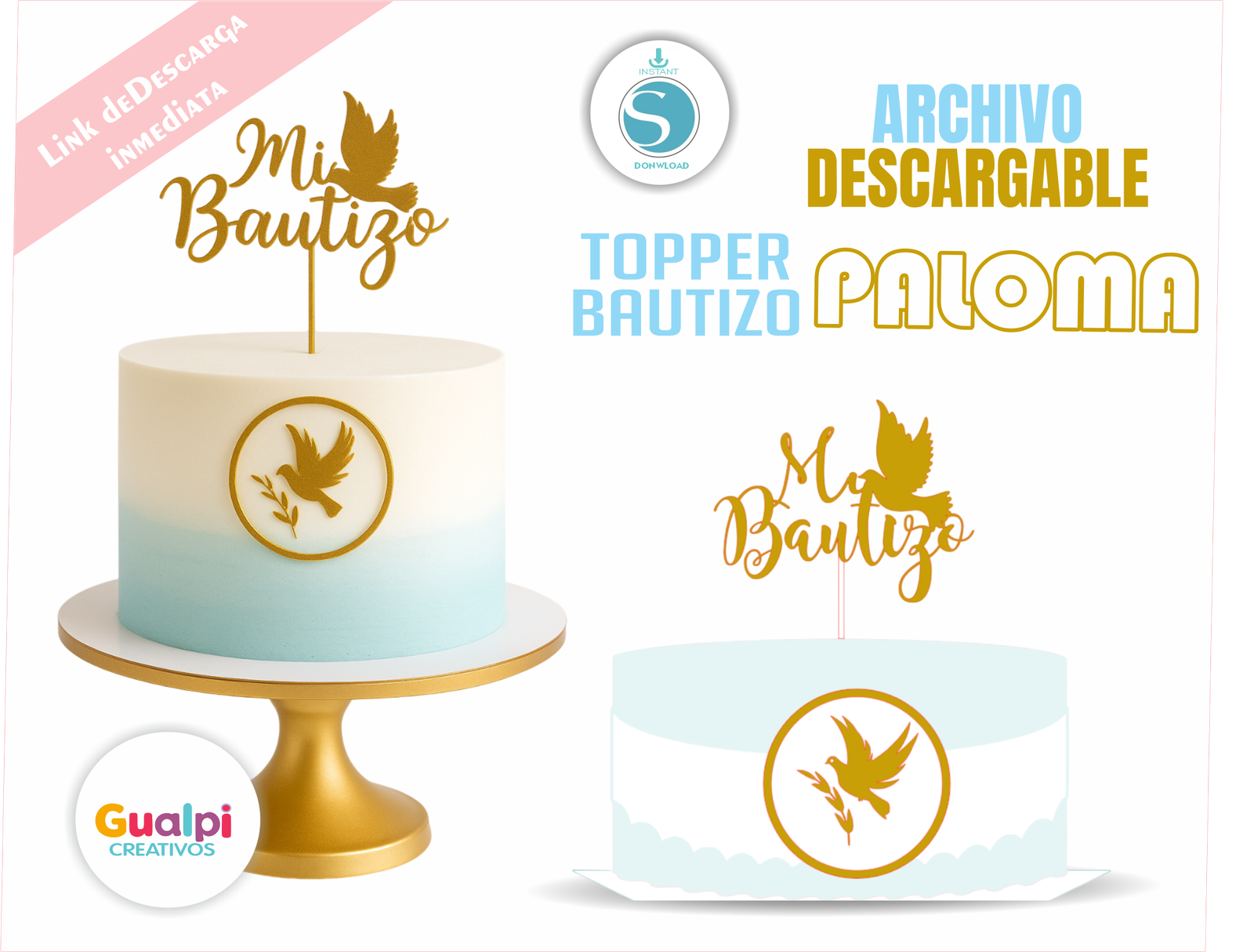 Dale un toque tierno y divertido a tus tortas con este kit de toppers digitales para bautizo Paloma dorado💕.