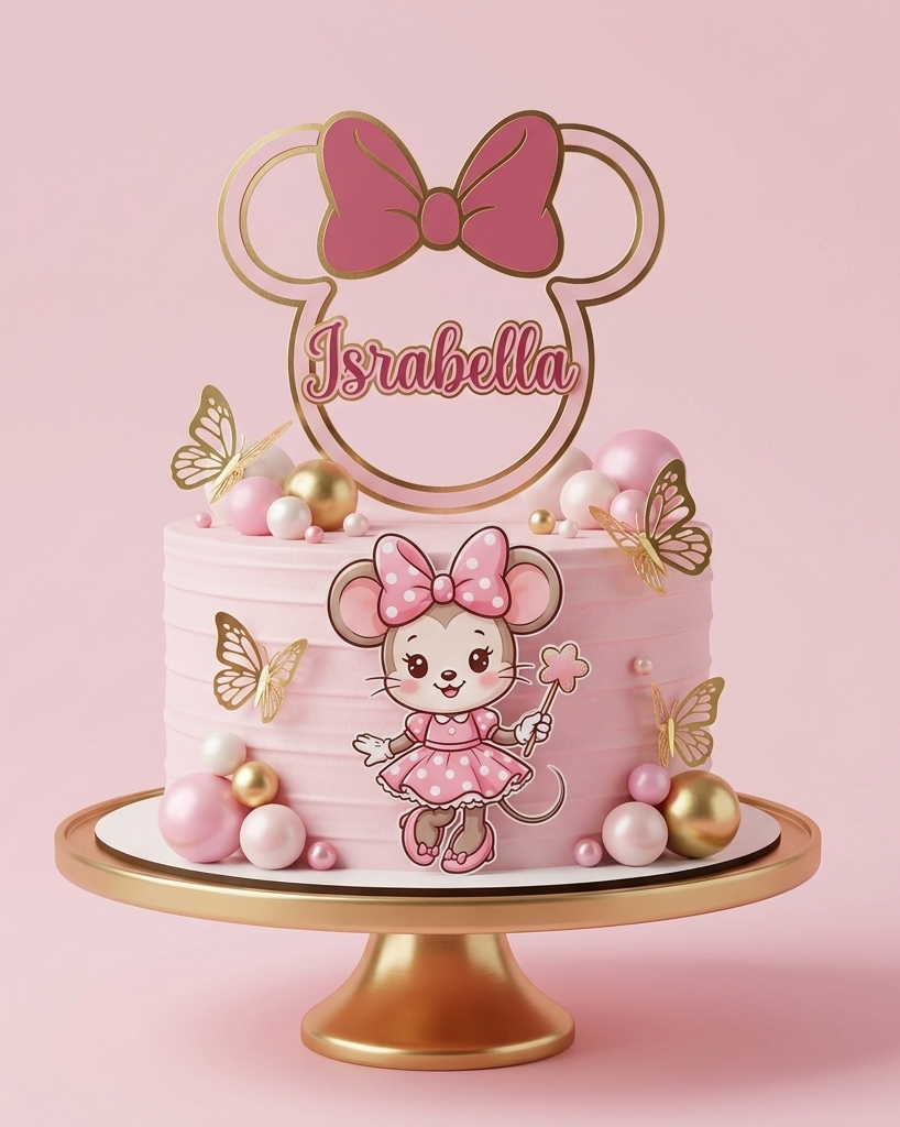 Descarga este hermoso topper de ratoncita cute estilo princesa personalizado con nombre, ideal para decorar tortas de cumpleaños infantiles con un diseño tierno, elegante y encantador.