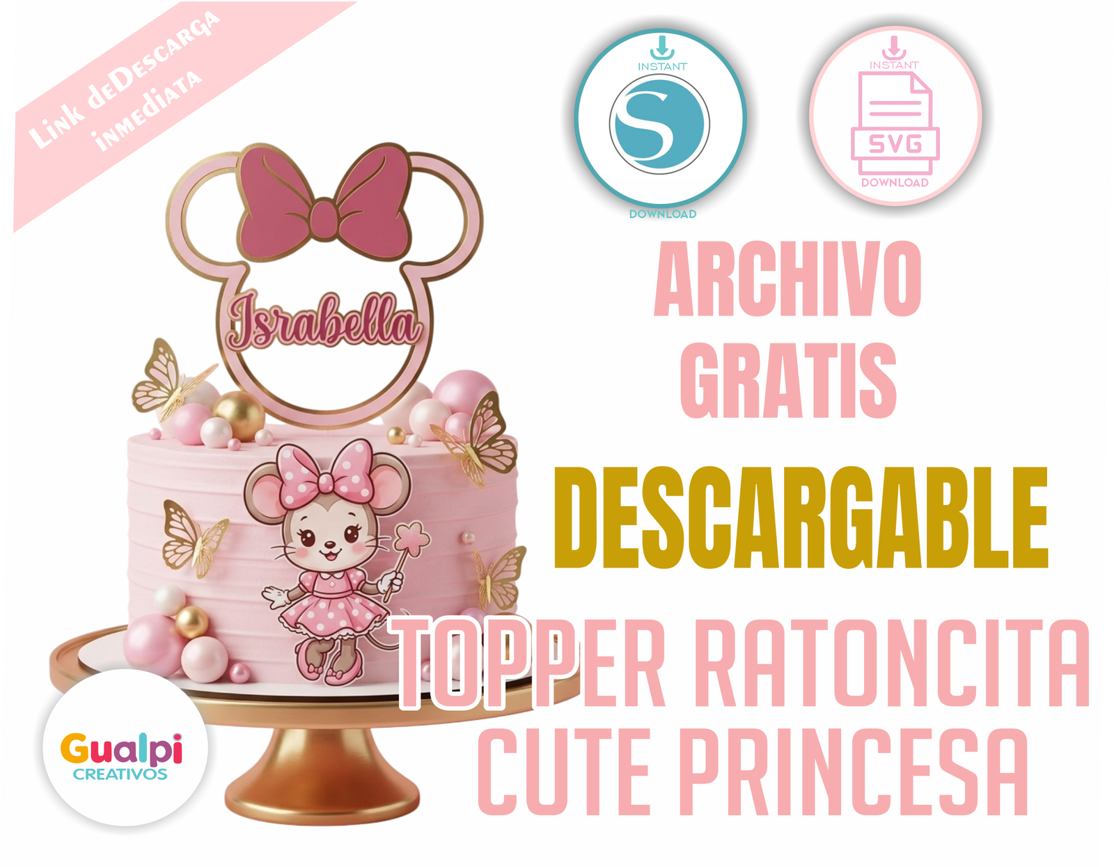 Topper Ratoncita Cute Princesa Personalizada | Archivo Gratis SVG y Silhouette Cameo