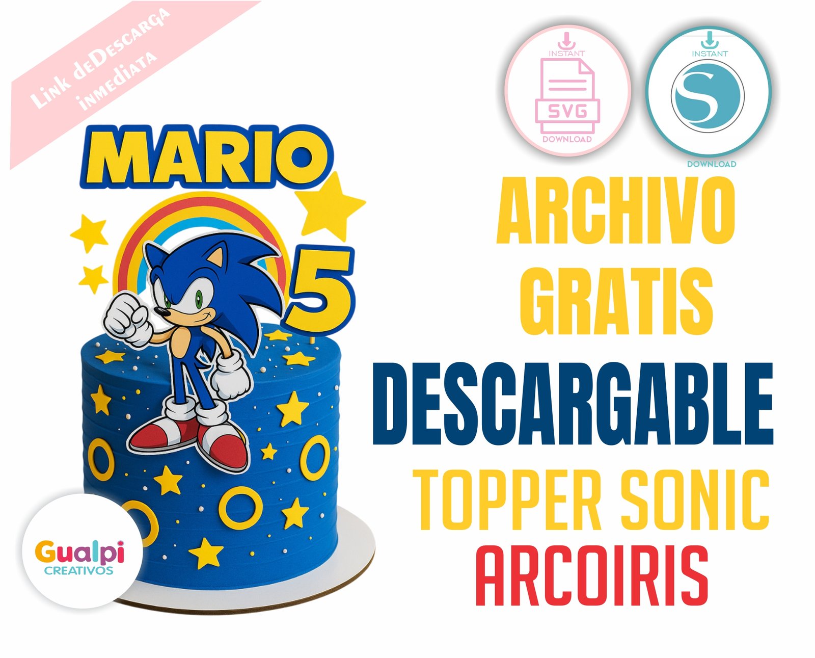 📥 Descarga GRATIS este topper Sonic arcoíris en capas y crea tortas infantiles llenas de color y energía