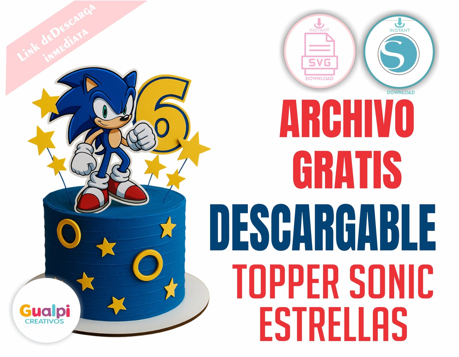 📥 Descarga GRATIS este topper Sonic con estrellas en capas y crea tortas infantiles que brillan con estilo