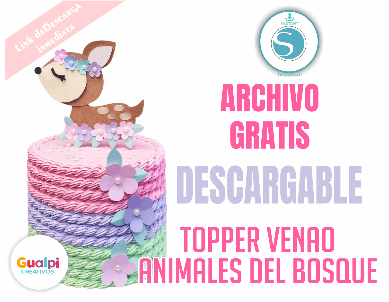 Dale un toque tierno y encantador a tus celebraciones con este hermoso Topper Venado – Animalitos del Bosque 🦌🌸